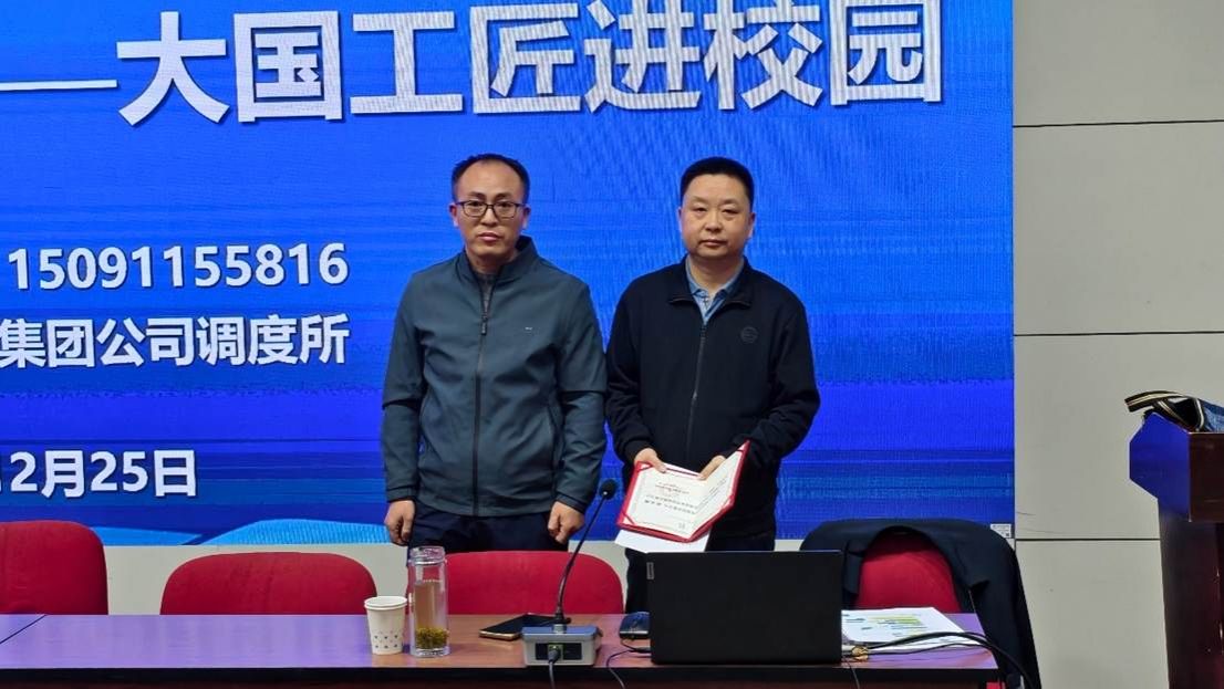 讲座伊始,刘广武代表学院对张汉强科长的返校表示热烈欢迎,并简要介绍了其在铁路调度领域的突出贡献与专业成就。他强调,邀请行业领军人物与一线专家走进校园,是学院推动产学研融合、强化学生职业素养培育的重要举措,也是凝聚校友力量、传承铁路人精神的有效途径。随后,刘广武代表学院正式聘请张汉强为学院技能大师并颁发聘用证书。