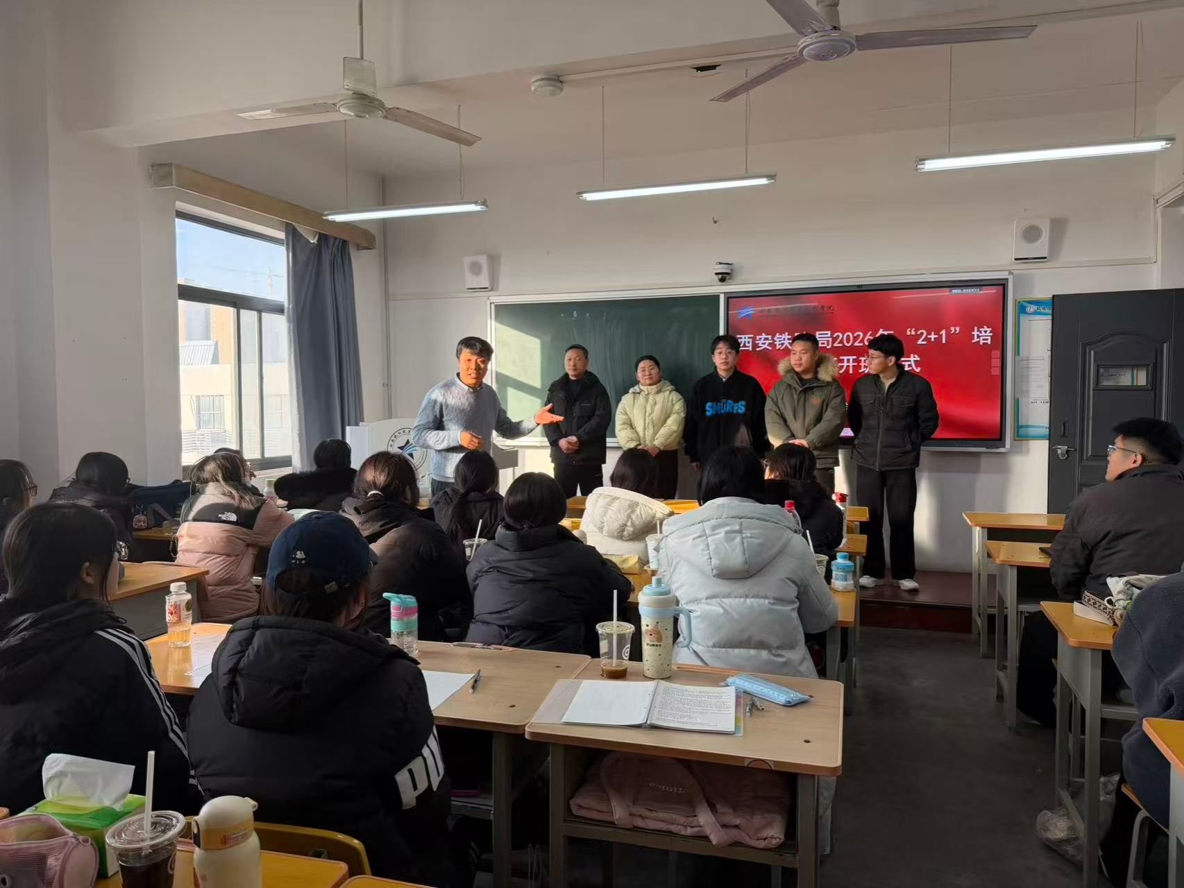 1月12日,根据学校关于对西安局预录取学生开展“2+1”校企联合培养工作的工作安排,交通运输学院在龙首校区6号楼第一会议室召开西安铁路局2026届校企联合培养“2+1”培训班开班仪式。中国铁路西安局集团有限公司西安物流中心人力资源部部长高珊、交通运输学院院长王公强、副院长刘广武、教学科科长聂晶晶、学工办主任梁磊、运输教研室主任牛天河、物流教研室主任贾苏绒、高乘教研室副主任王静、西安局相关工种培训教师代表、培训管理老师和全体参训学员共同参加本次开班仪式,仪式由刘广武主持。