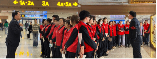 同学们跟随工作人员来到现场,深入了解了西安站的重点旅客服务流程及快速进站厅使用规则。工作人员提醒大家,务必以车站现场大屏信息为准,不盲目轻信第三方购票软件信息;同时指导大家区分南北进站口,熟悉站台回廊布局与通行规范。此外,要求大家在服务中做到文明耐心,遇到无法解决的问题及时联系班长,严禁与旅客或工作人员发生冲突,规范做好旅客引导与帮扶工作。通过前辈的悉心指引,同学们逐步熟悉了各项服务场景,为后续实践奠定了扎实基础。