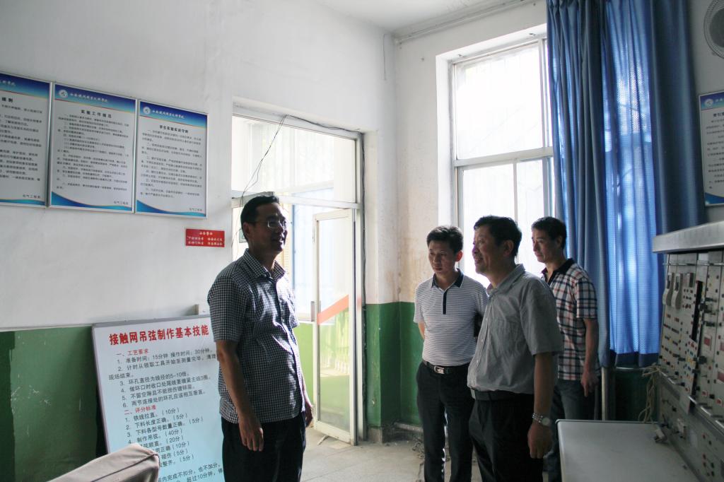 在实验楼一楼,赵六杰详细查看了交通运输学院正在装修建设的4个铁道运输专业实训室,并与校区及二级学院领导交流,了解实训室的建设及使用情况。