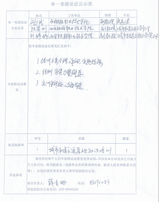 五、附件:城市轨道交通基础知识培训项目单一来源论证公示表